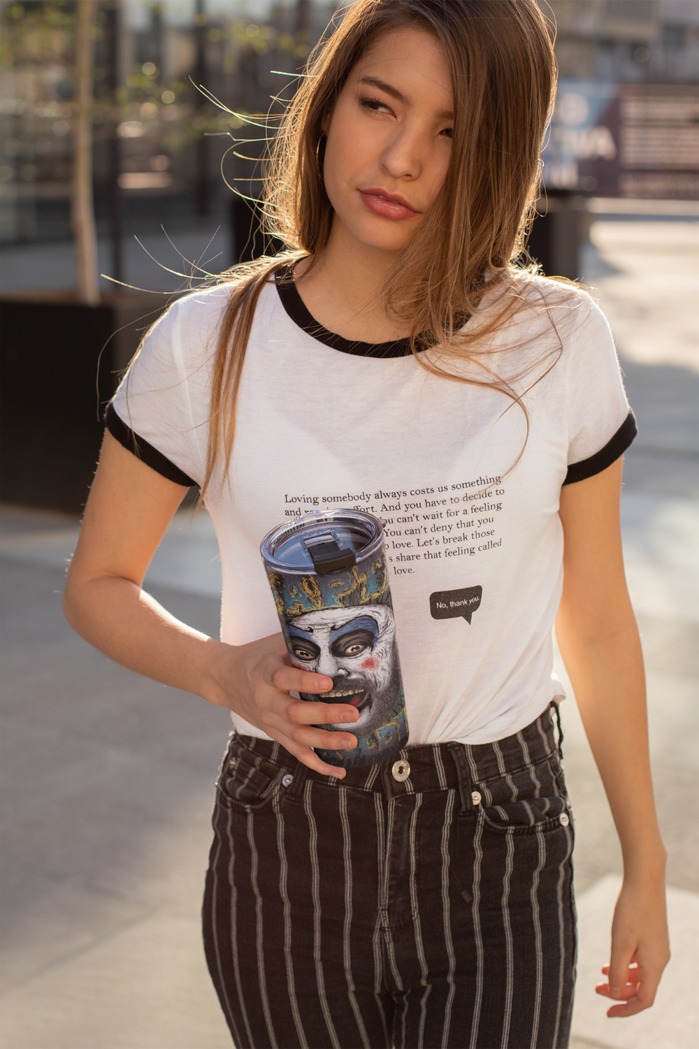 - **Design:** Horror clown face art, full-wrap around cup