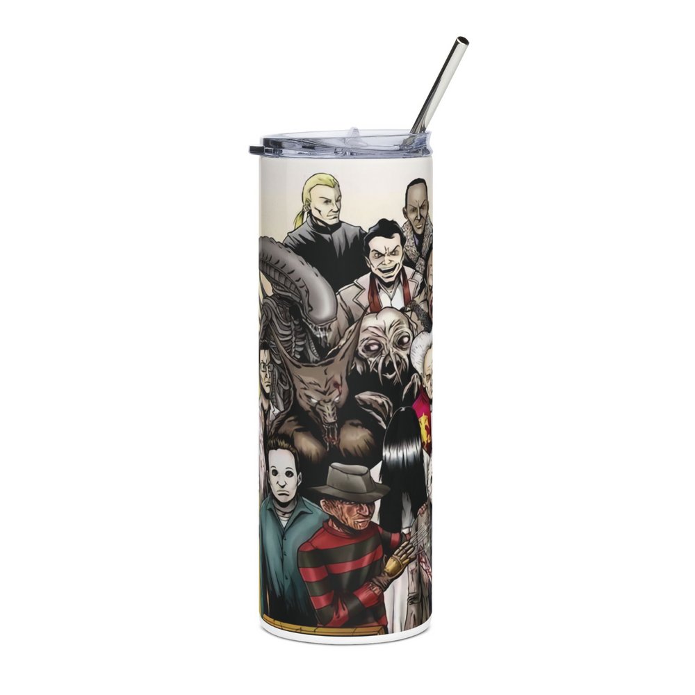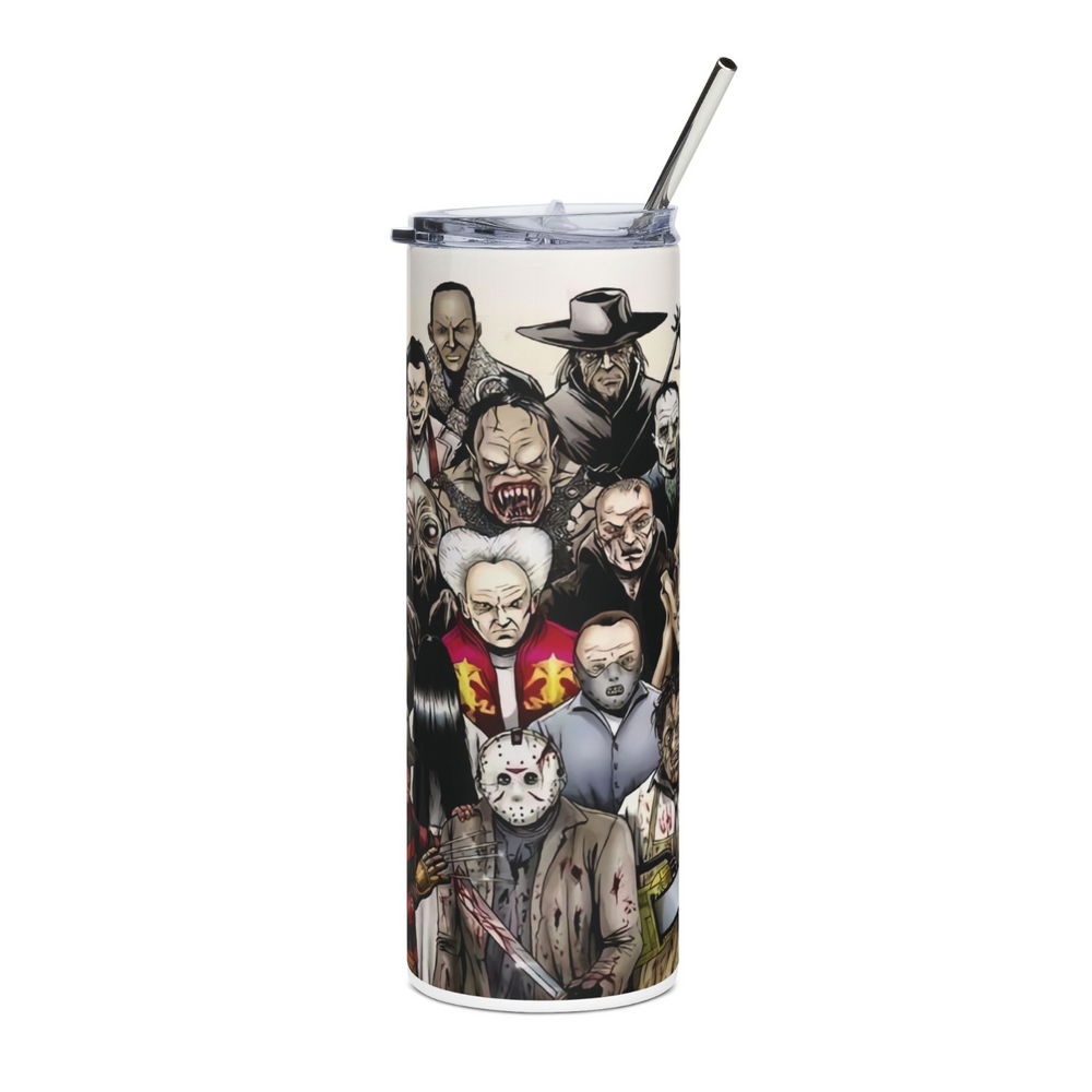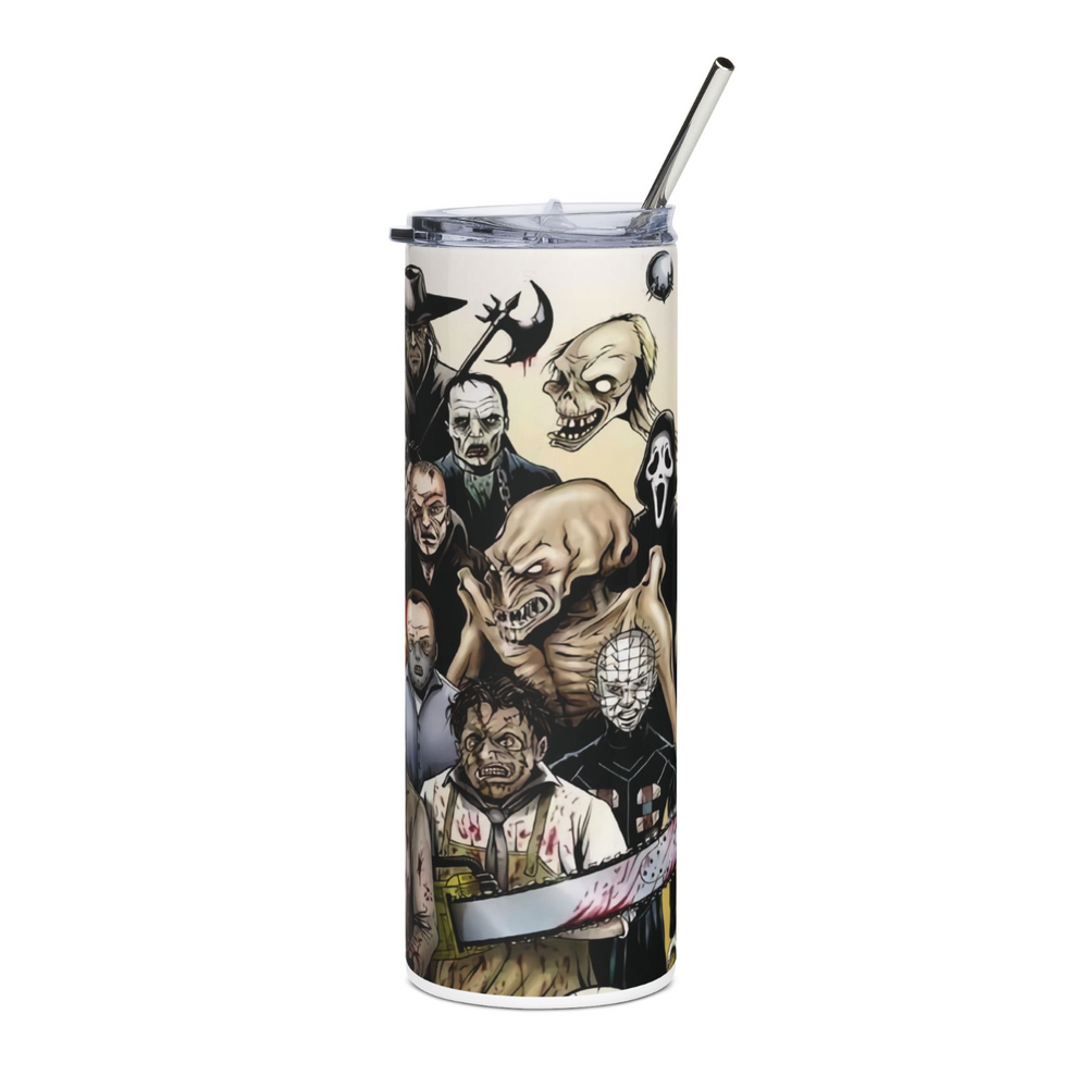 20oz Horror Villains Collage Tumbler β Slasher Movie Stainless Steel Cup & Straw