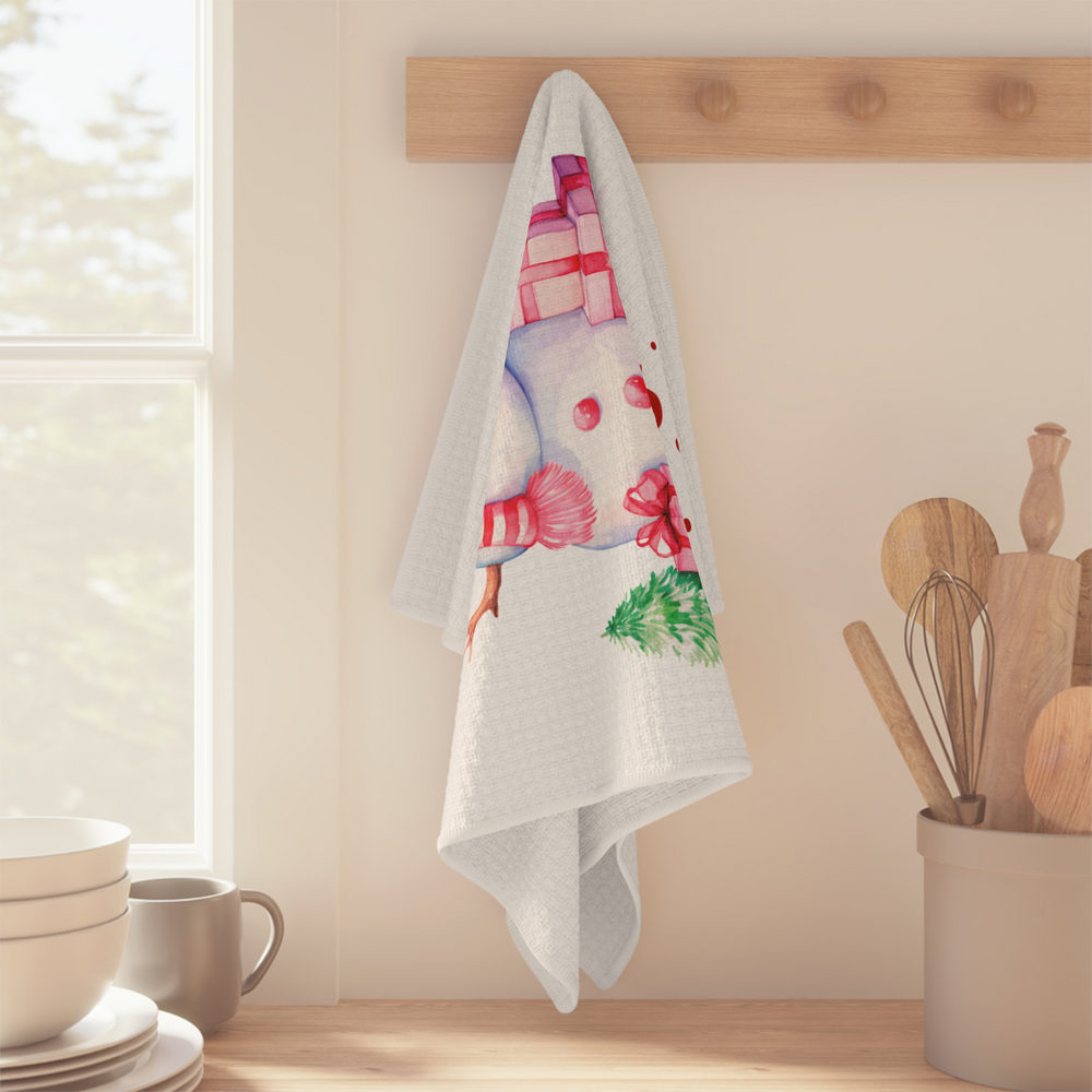 Bring cozy Christmas vibes to your kitchen with this Merry Christmas Snowman Towel. Featuring a cheerful snowman surrounded by presents and festive red accents, this towel is the perfect blend of cute and classic holiday charm.