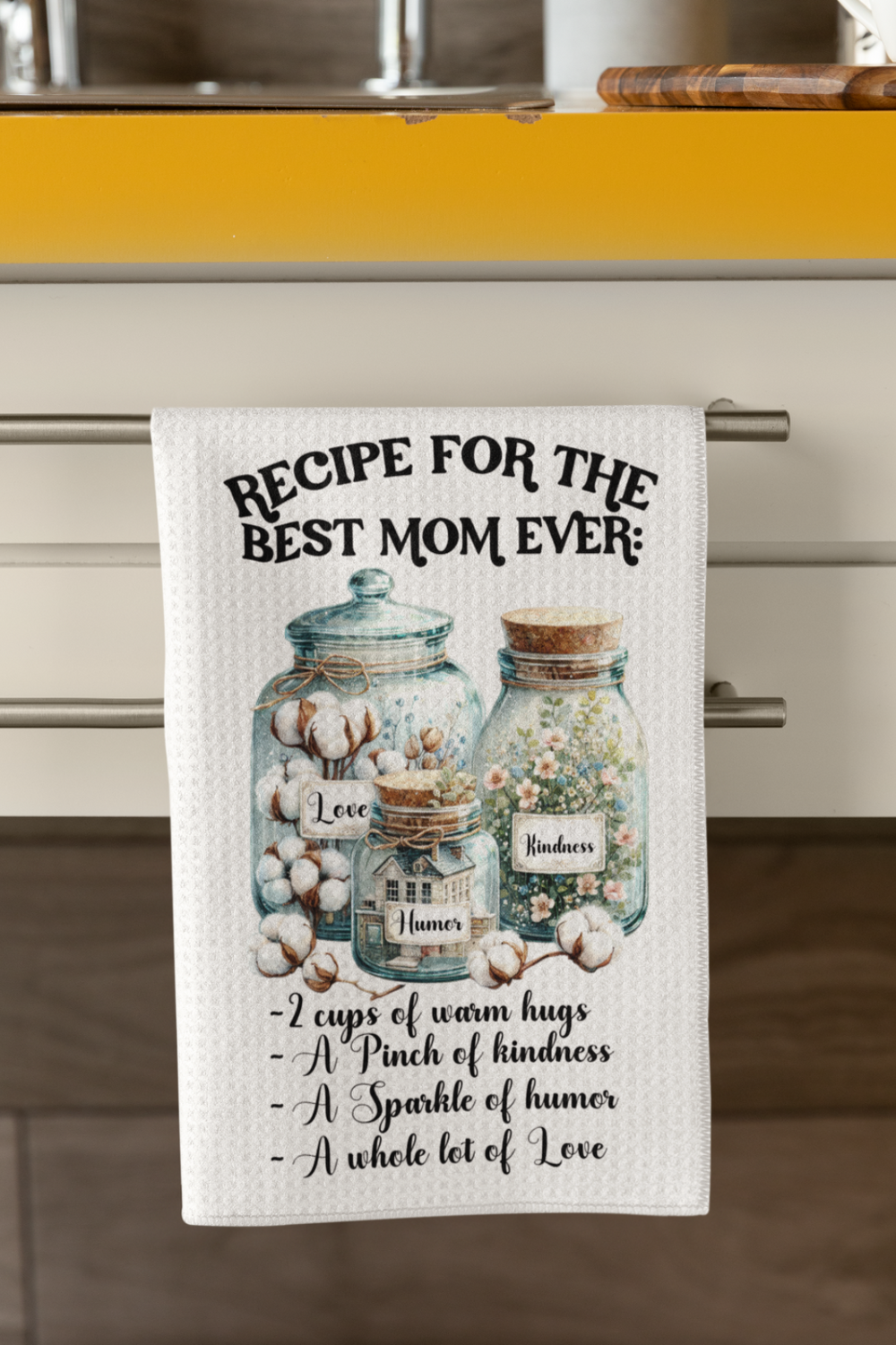 Show Mom just how special she is with our Recipe for the Best Mom Ever Kitchen Towel Set. Each towel features a beautifully illustrated set of jars filled with Kindness, Humor, and Love — the perfect “ingredients” for the world’s best mom.